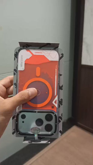 Overall, this case has a trendy, modern, and tech-inspired aesthetic with clear plastic and bold orange accents.